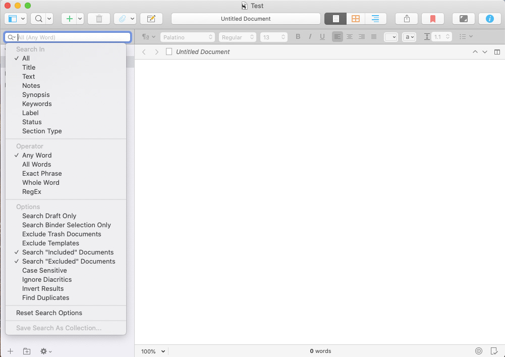 Scrivener-specific search tips